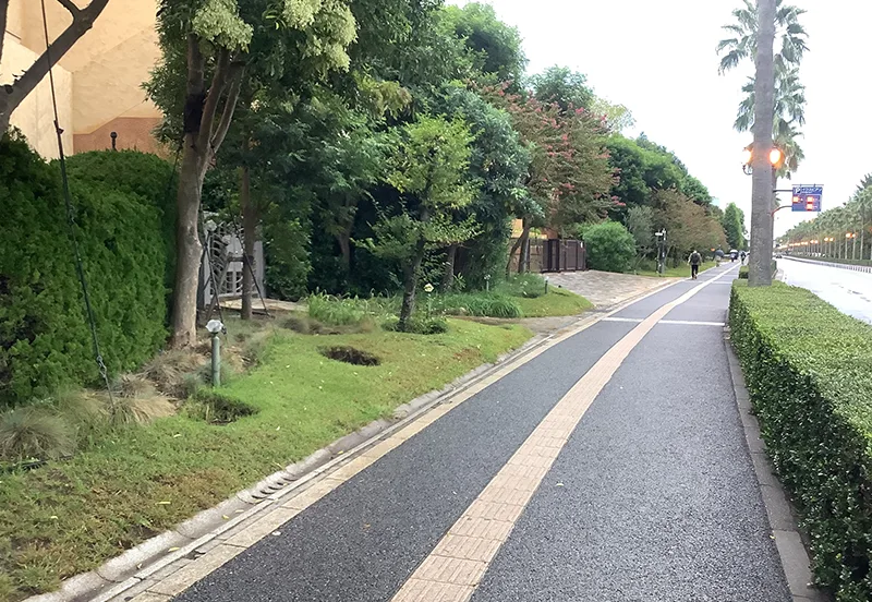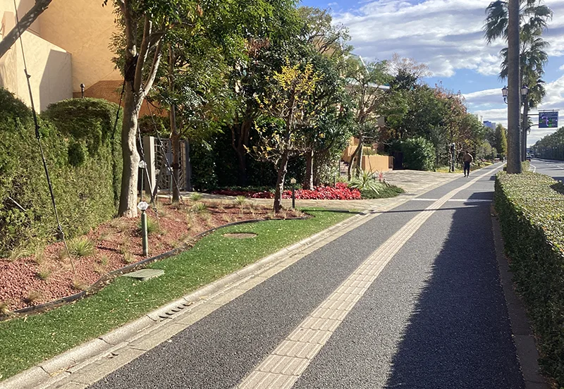 歩行者が植栽地内に入ることで、芝の育成不良や地被植物類が育たない環境であったため、人の侵入を防ぎ、且つ歩行者に目を止めてもらえるようなデザインへ変更しました。もちろんお客様からの要望も満たしつつ、デザイン性だけでなくメンテナンス性も考慮した、グリーンアンドアーツらしい施工です。